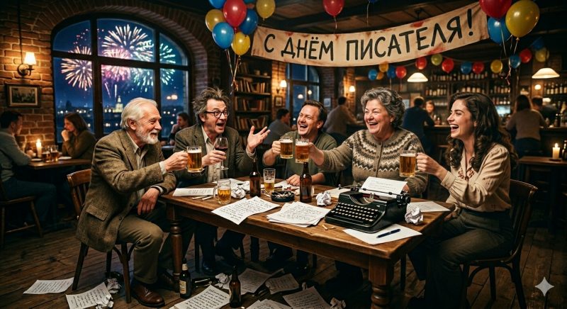 С Днем писателя, коллеги! Выпейте там – у кого что есть )Спасибо, Саша! Это твой праздник, а мы лишь просто погулять вышли)