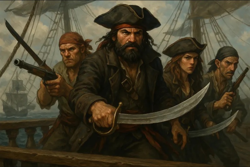 Пока наши корабли плывут "шаг в шаг" - семь Амазонок против семи пиратов. Всего 14 моряков и морячек.