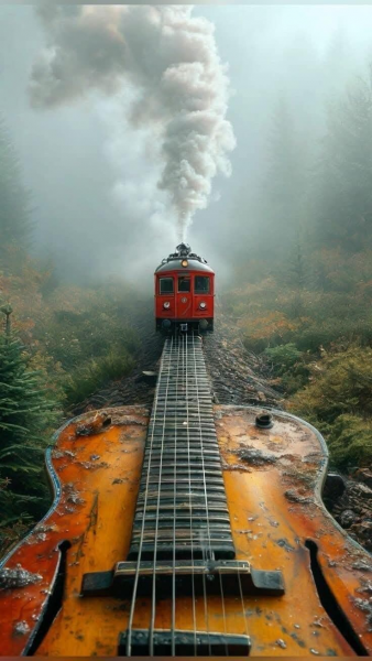 Дорогой длинною, да семиструнную, да с песней той, что вдаль зовёт меня… Мчится поезд, в чистом поле…словно это тёмно вишнёвая шаль…. Это первое, что пришло в голову, глядя на эту ИИ картинку. Наверное, если дать такое задание именно таким и будет ответ. Пойду попробую, что моя Мета придумает.