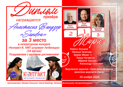 Спасибо сообществу «Литературный Млечный Путь» за участие в конкурсе «Контраст-8» и за ту творческую энергию, которой вы неизменно делитесь с нами! Ваше участие делает творческое пространство богаче и ярче, добавляя россыпь талантливых звезд на наш общий литературный небосвод.